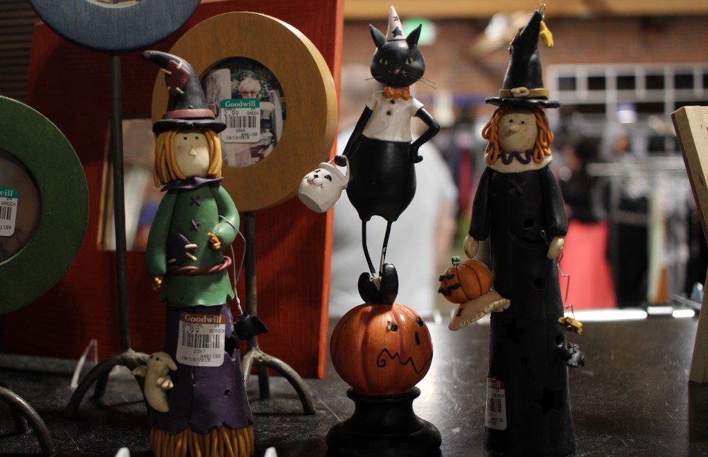 Though it’s almost over now, and probably gone by the time many of you read this. Sadly, I didn’t take much part in the spooky season this year, for reasons leading to my lack of a social life. But, I visit a local Goodwill thrift store, because I like doing that in the small times I do have. And cheers here, were for the left over Halloween costumes, props, and decorations. All of which, I found are visually wonderful for any part of the year; because such delights are lasting and silly far beyond this time of year.